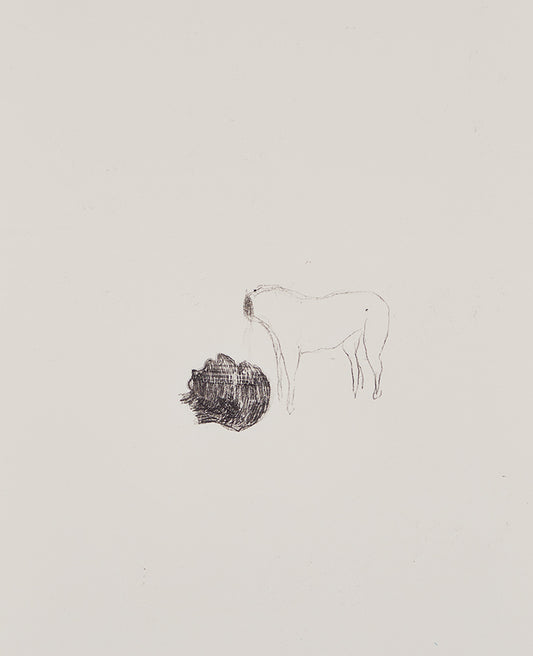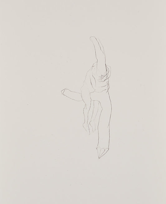 Misheck Masamvu’s set of seven drawings, inspired by his poem Still, explores the hybridisation of the human body with organic forms. Figures float in white space, evoking a sense of timelessness and transformation. Through figuration and abstraction, Masamvu reflects on the deep connection between humanity and nature, offering a powerful blend of vulnerability and strength.